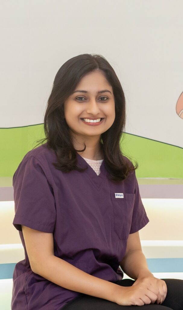 Dr. Shruti Sriram is a pedodontist who graduated from the prestigious Manipal University, Manipal and received the Indian Dental Association scholarship award for acquiring the highest percentage. She went on to pursue her vocation of general and then children’s dentistry, earning her Masters from VS Dental College, Bengaluru. She has a special interest in treating children with special healthcare needs, full mouth rehabilitation under general anesthesia and preventive dental care.